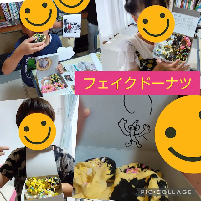 「にせものです。まちがえて食べないでね。」と優しいメッセージを書く子どももいました。本物そっくりなとても美味しそうなドーナツが完成しています♪♪
