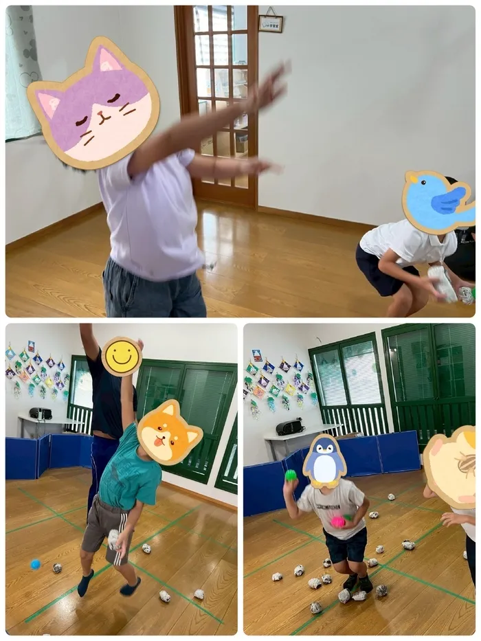 本日の室内活動は、子供達からのリクエストで玉入れ勝負になりました🏐