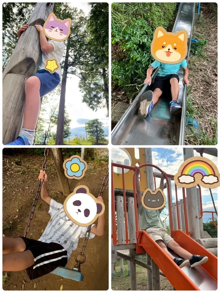 自然の中にある滑り台をはじめとした遊具に、みんな興味津々で、自分のお気に入りの遊具を見つけて、繰り返し元気に遊んでおりました🛝