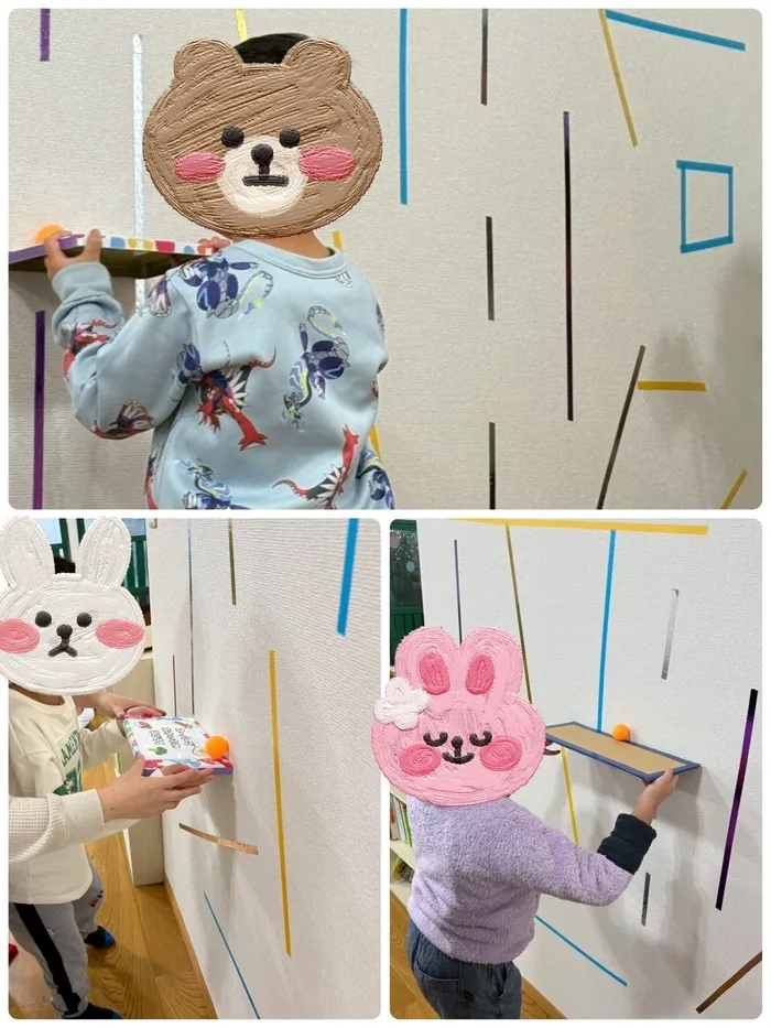 壁に貼られたテープにボールがぶつからない事、ボールを板から落とさないことをルールとし、自分が進めやすいルートを探っていました🔍