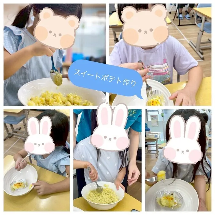 芋🍠を混ぜたり切ったり…とお子さま達が「やりたい!」と言っており、職員のお手伝いをしてる姿も見られました😊