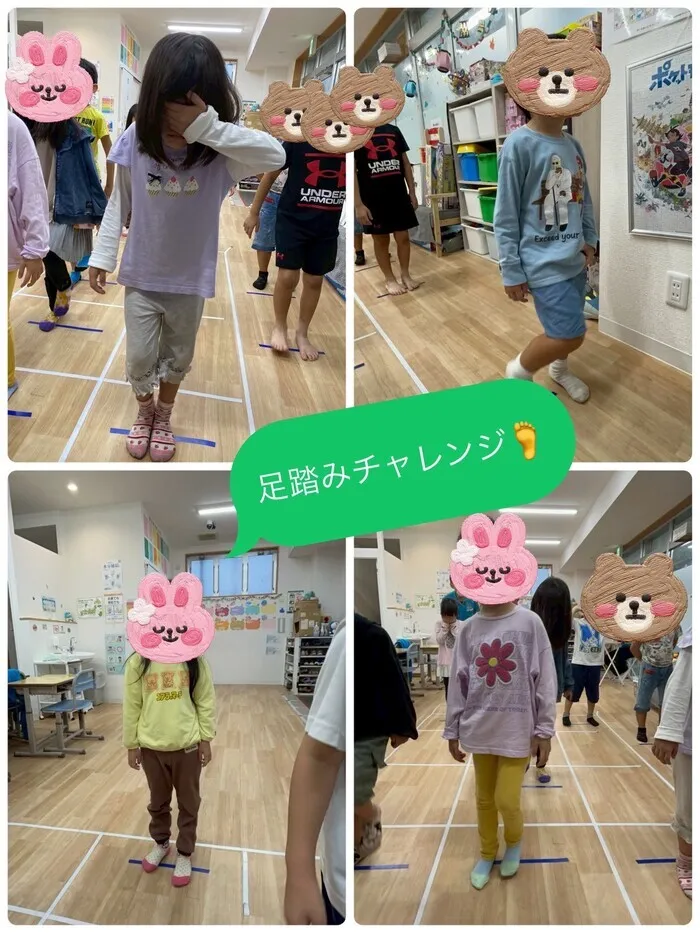 結構ずれるかな?と予想をしていましたが、どの子もほぼテープの上で足踏みすることができ、子どもたちも職員も驚きでした🤩