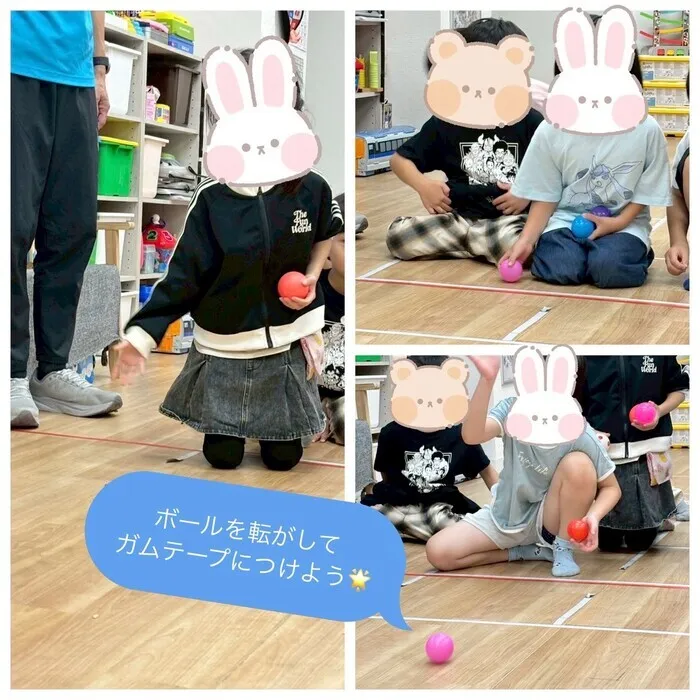 本日の活動は、ボールを転がしてガムテープにつけようを行いました✨