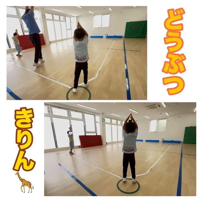 TAKUMIでは様々などうぶつの動きを真似して楽しみながら行っております!
