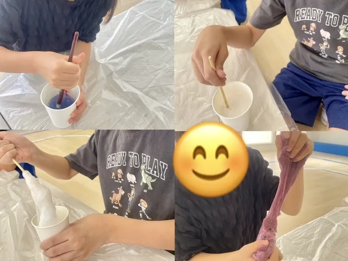 みんな慣れない感触に初めは戸惑った様子でしたが、だんだん楽しみながら家族で一緒に遊んだり、お友達とお話しながら遊んだりしてくれました😊