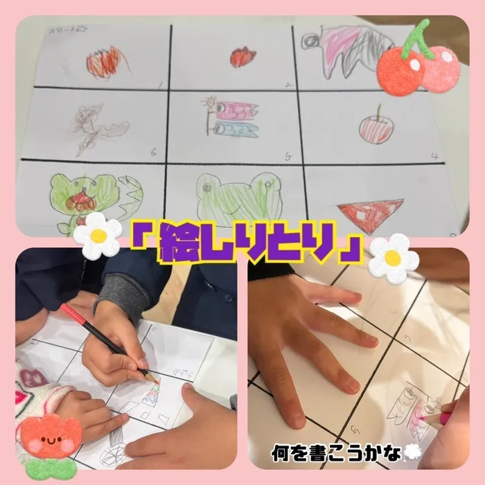 お題の言葉を言うのではなく、絵で繋いでいくしりとりに挑戦!
