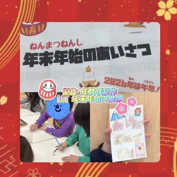 お正月シールを貼ってデコレーションしたり、お正月といえばと考えながら好きな絵を沢山描いてオリジナル年賀状を作りました✨