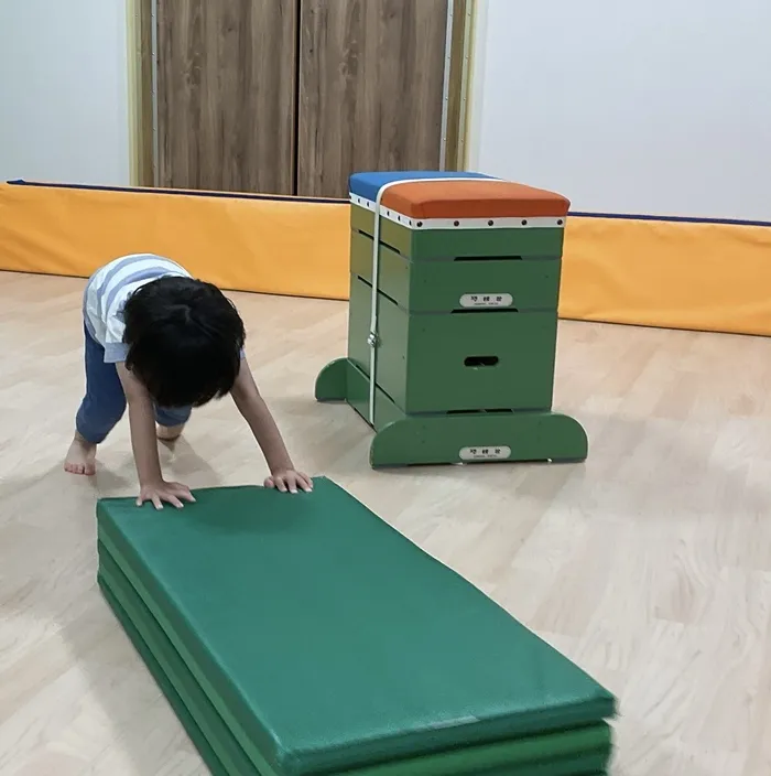 マットを押すことで、腕・脚・お腹・背中の筋肉がバランスよく使われ、自然と全身の力が育っていきます。