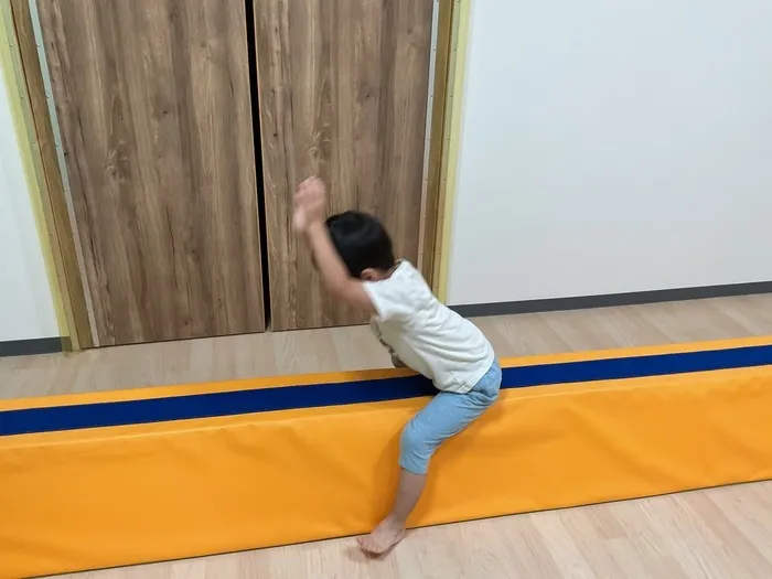 手をつく位置を“遠く”に設定することで、より大きな動きが必要になり、子ども自身の挑戦心も育ちます。