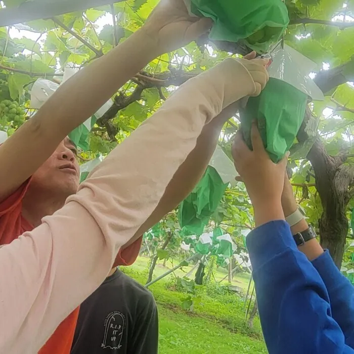お友達がぶどうを選んでいる時には、「こっちのぶどう、色が濃くて甘そうだよ!」とアドバイスをしてあげる優しい場面も。みんなで協力しながら、最高のぶどうを選ぶことができました。