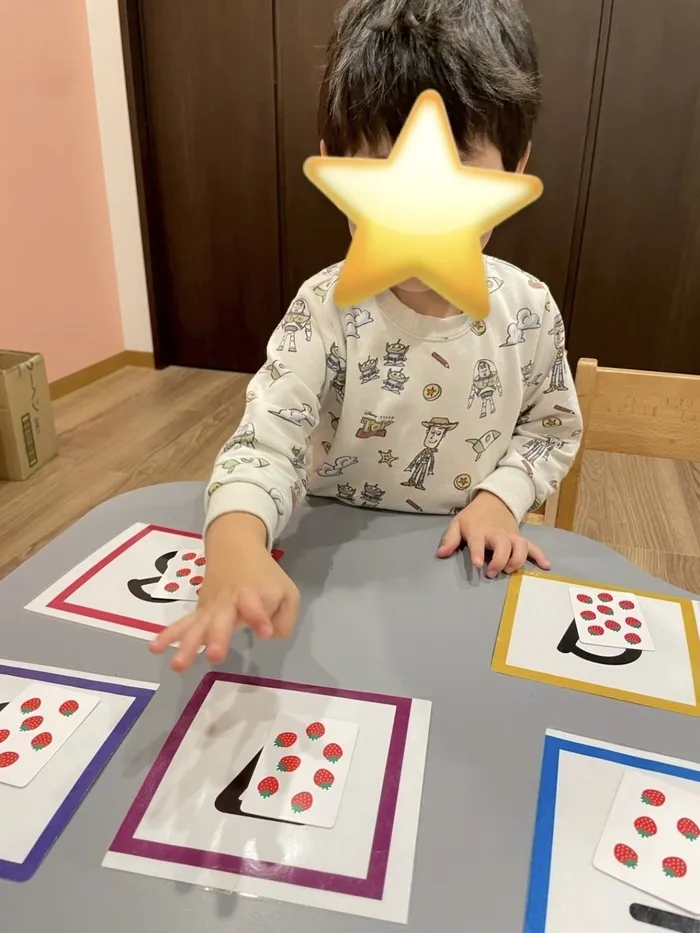 カードをよく見て数を確認しながら、集中して一つひとつ丁寧に取り組む姿が見られました。この活動を通して、数量概念への理解や集中力が高まります ♪