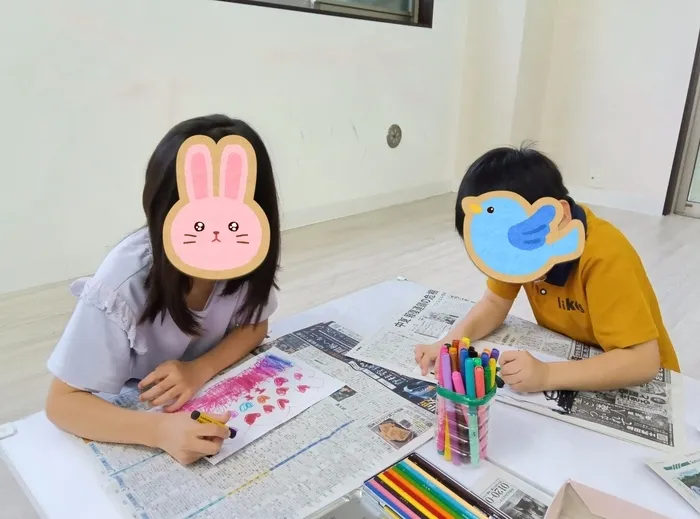 好きな絵を色鉛筆やカラーペンで描き、その上から黒のクレヨンで塗りつぶします!そのあと、クレヨンで塗ったところを割りばしで削り絵を描きます🖍️