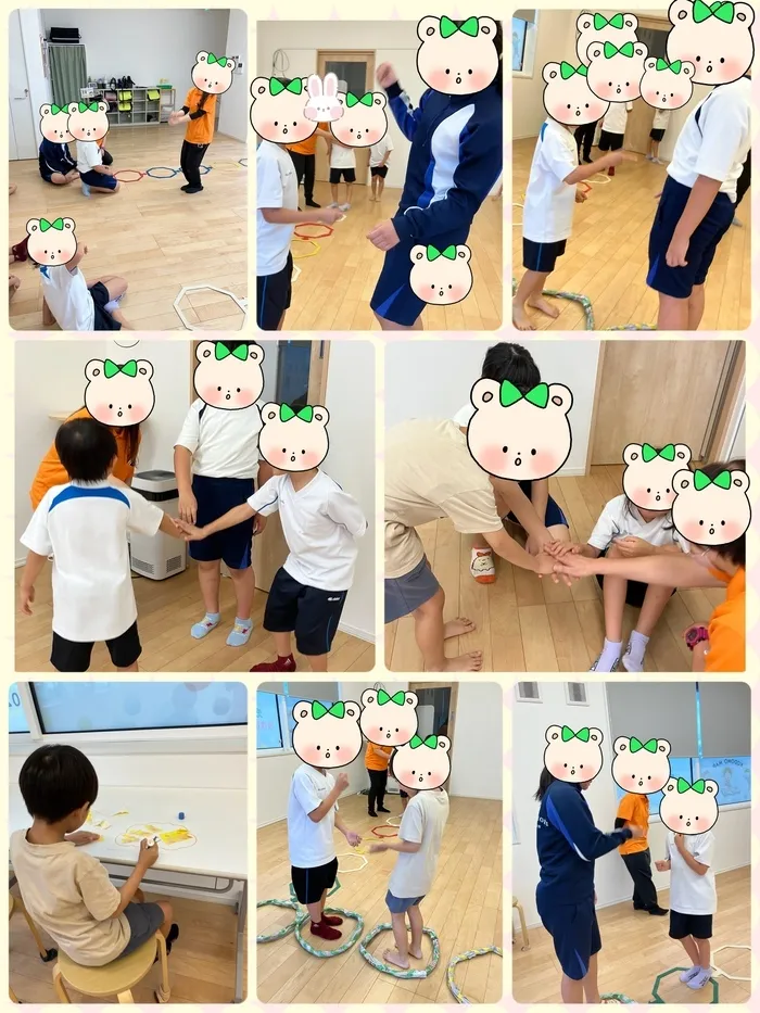 みんな元気いっぱいに来所しました‼️宿題もあっという間に終わり、今日の活動「輪っかジャンプじゃんけん」では、始まりにみんなで「エイエイオー‼️」の掛け声をしました⭐️ゲーム中はみんな協力し合ってじゃんけんの様子を伺い、輪っかの中をジャンピング!楽しそうにじゃんけんをしていました😆子供達は活気いっぱい楽しみました🌟