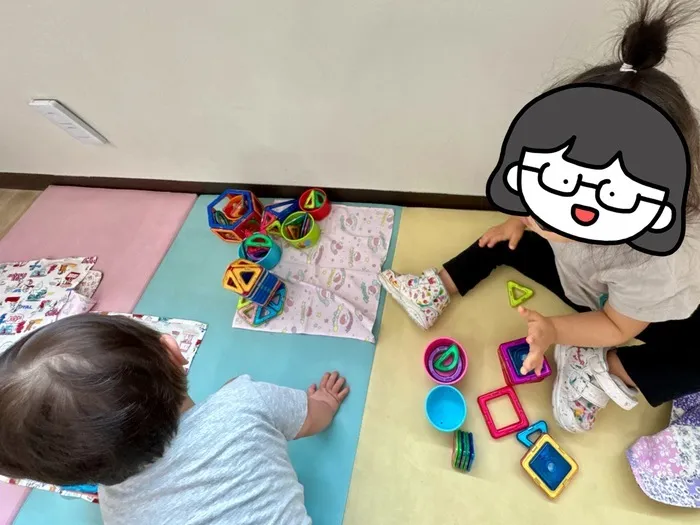 左側の男の子は、今日は手を繋がない状態で30歩以上歩けました!👦🏻