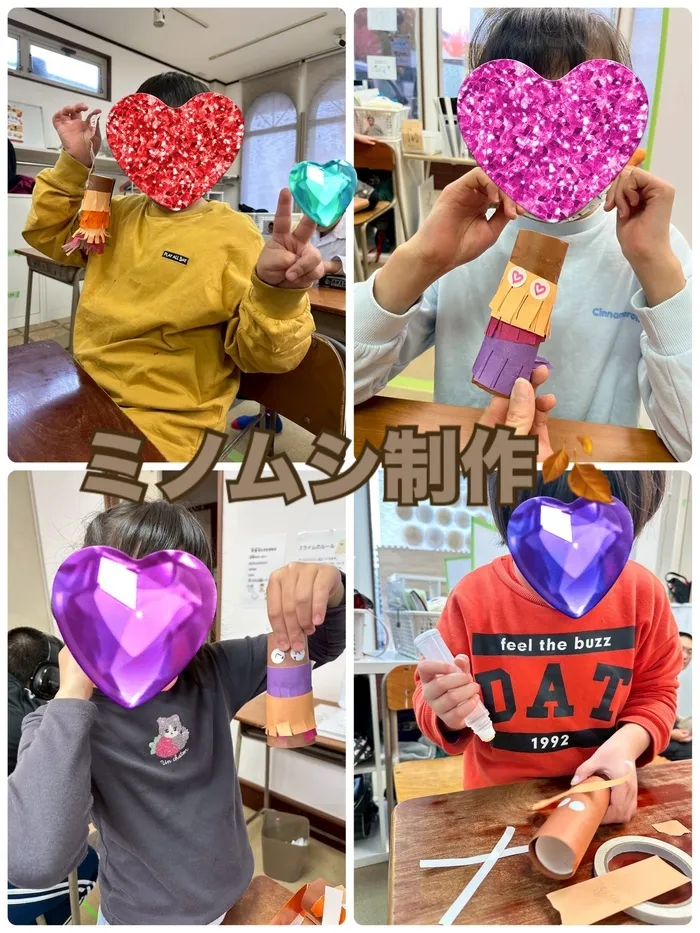 みんなでトイレットペーパーの芯や折り紙などを使って、ミノムシを作りました♪