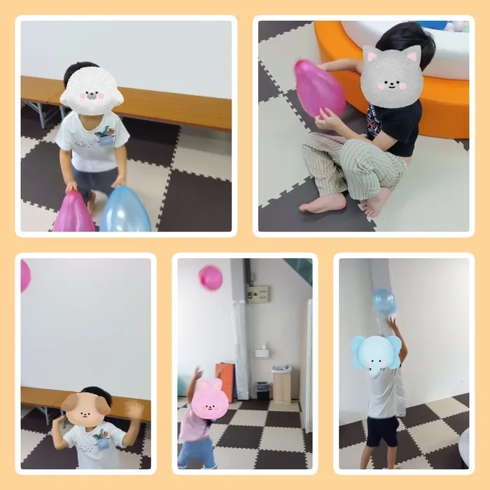 風船には、目の微細な動きにより感覚刺激が入り、字の形をとらえやすくする、文字の前後をとらえやすくするといった役割があります😊