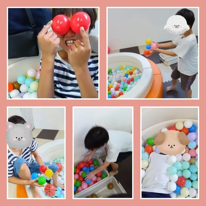 子どもたちも来所してすぐにボールに気が付き、遠くまで投げたり、果物やチョコレートに見立てて遊ばれていました!