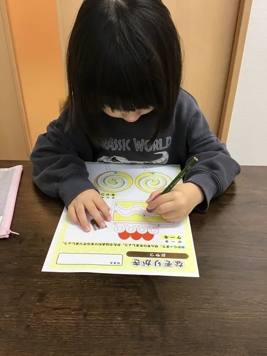 運筆は、線や曲線等をなぞって、指や手首をコントロールする中で、文字を書く力を身に付けます。