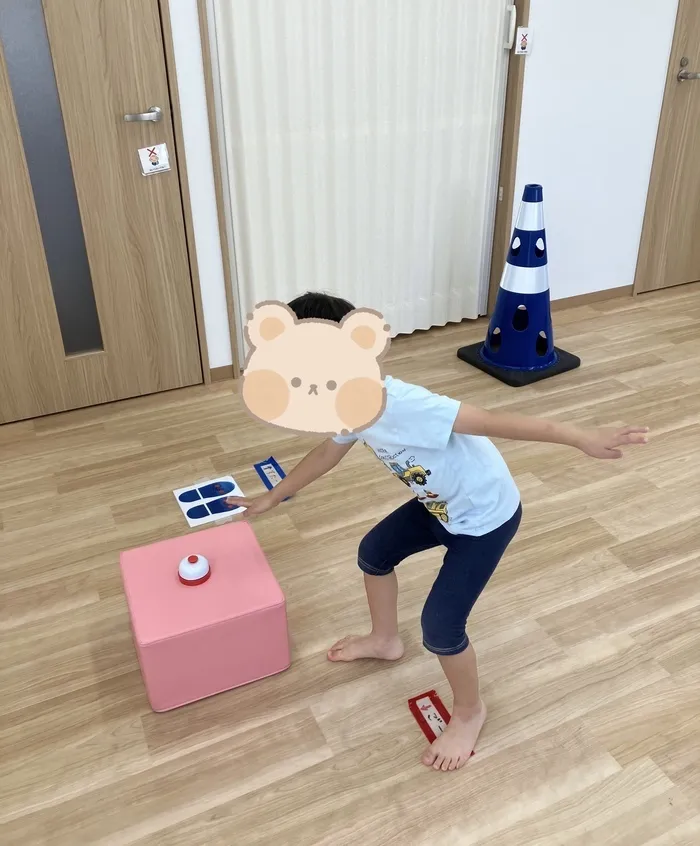 色を見つけてすぐ走る・・・赤・青・黄・黄緑それぞれにタッチ。
