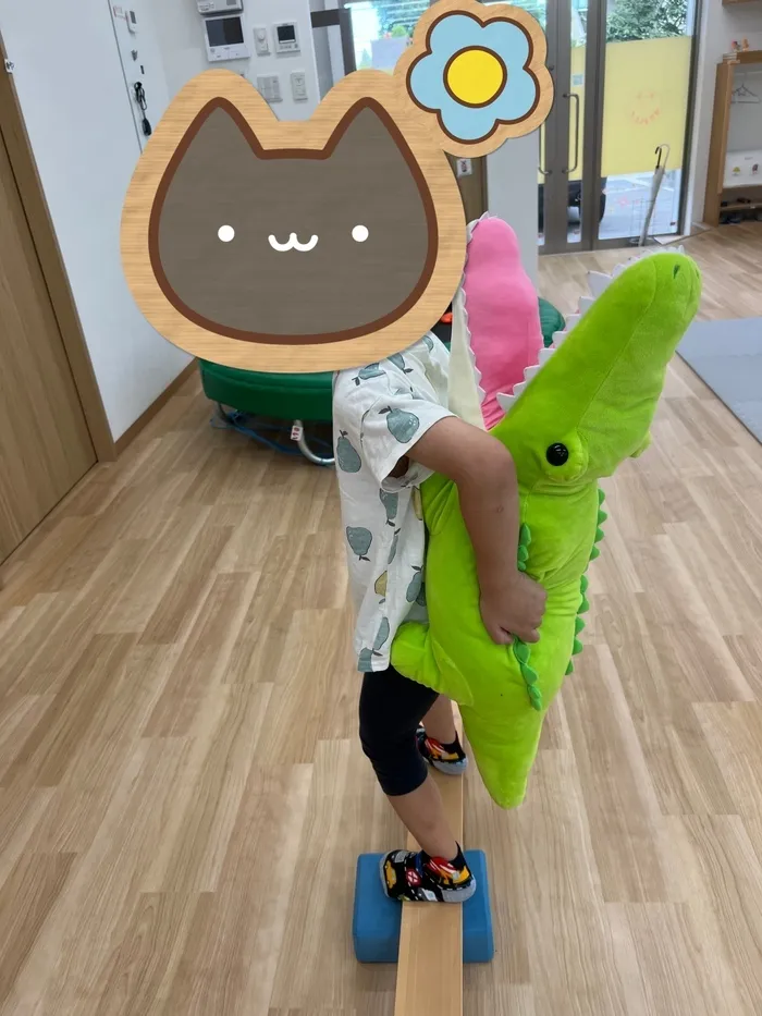 ワニさんを背中に「おんぶ」・・・洗体動作【体を洗う(背中)】→背面意識を