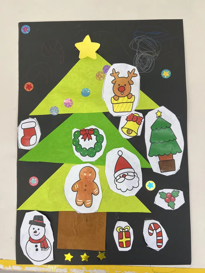 切った飾りを画用紙の上に貼ってもいい・シールの色と枚数が合わなくても
