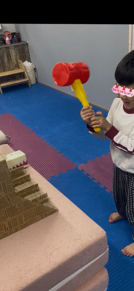ピコピコハンマーを握って「どこから出るかな?!😳」と