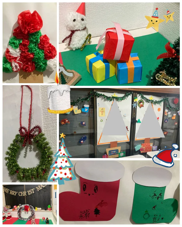 こすもすの室内は、今年は先生たちや子どもたちの手作りのクリスマス装飾で溢れています🎄🌟