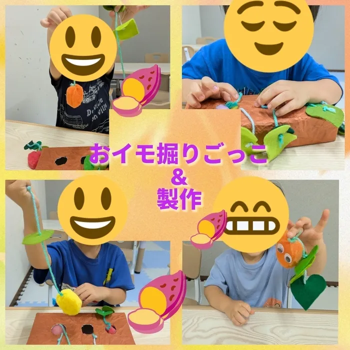 本日10/19(日)のイベントはお芋掘りごっこ&お芋製作を行いました🍠