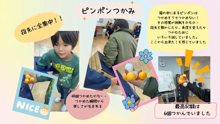 ピンポン玉は軽く、少し触るだけで動いちゃう!
