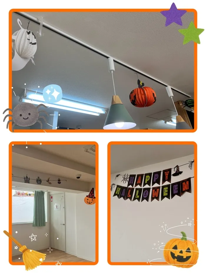 ジャック・オ・ランタンやおばけで飾りつけをしています。