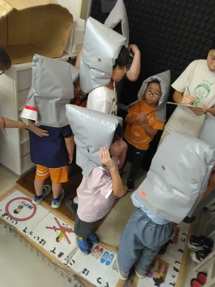 大人からの指示がなくても、子どもたち自らがお友達の防災頭巾を配ってくれて