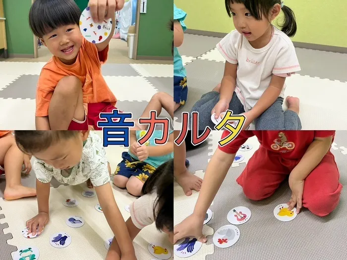 こんにちは♡ 児童発達支援・放課後等デイサービス どんぐりです✨今日は音カルタを行いました。耳を澄ませて音を聞き、音に合った絵札を取るというゲームです。はじめはルールを理解することが難しいようでしたが何度も行うことでルールを理解し楽しそうに遊んでいます😄