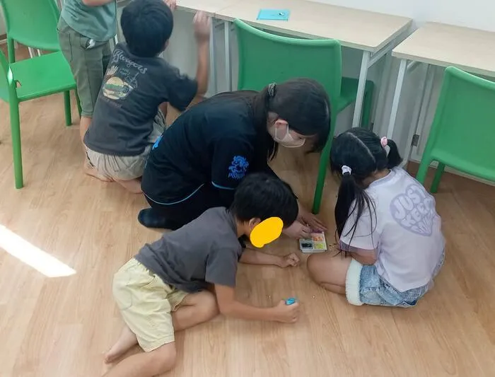 アクアビーズをやっていた子がケースに手を引っかけてしまい
