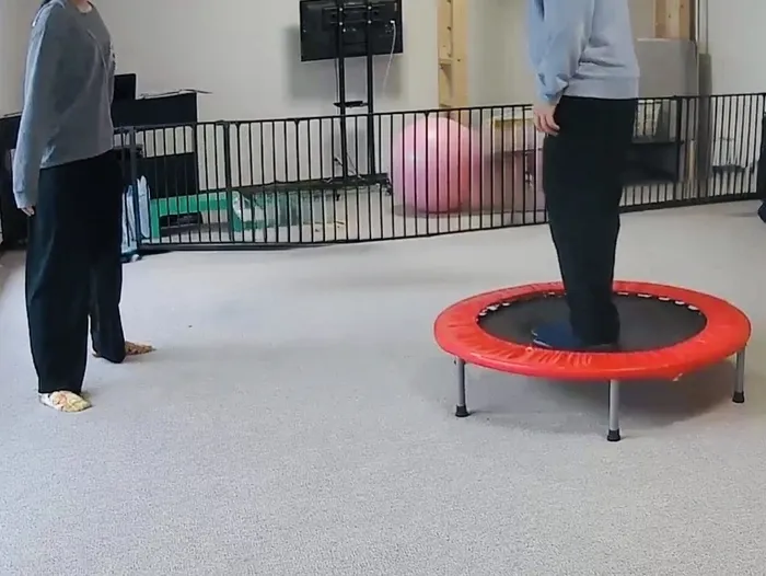 指導員同士でトランポリンの遊び方の練習を行いました。