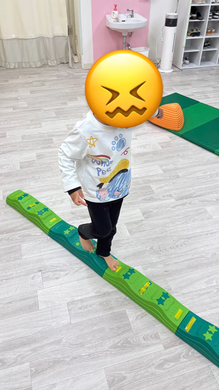 平均台の上でバランスを取って歩くことで平衡感覚を養い、転倒しにくい体づくりの基礎を育てます。また、平均台の上を落ちないように渡ることで注意力の向上が期待できます🚶
