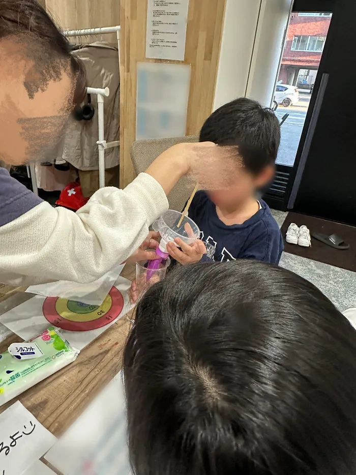 粉組は上手くいく一方、スライム組は風船内に入れる所でてこずりタイム😖