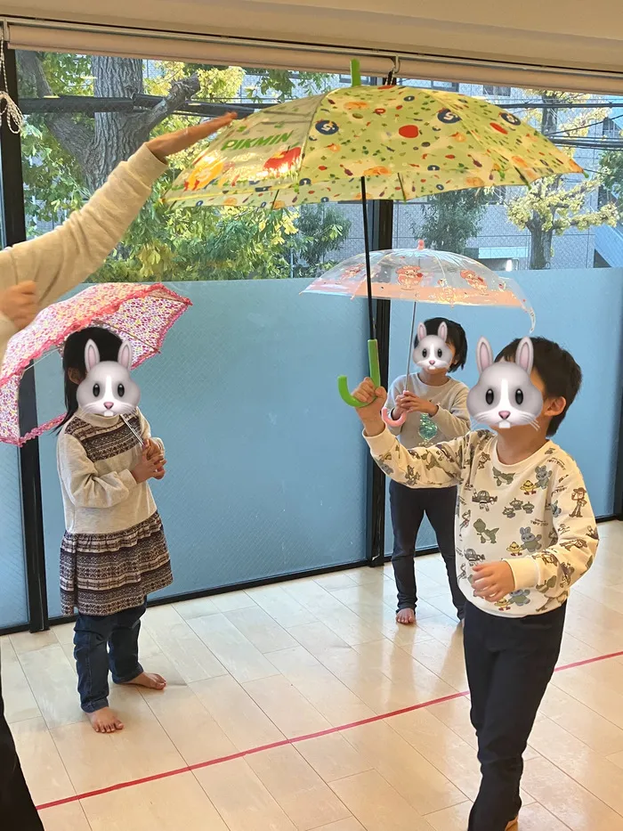 今日は、いつも使っている傘を持って来てもらい傘についてのお約束などを練習しました。