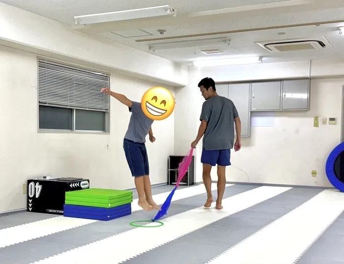本日は、子どもたちに大人気の【フープジャンプ】をご紹介します!