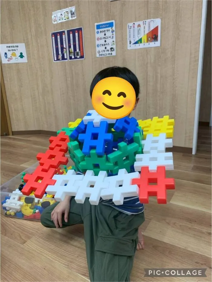ブロックを使って、「これをこうすれば丸にできる!」と自ら考えて組み立ててくれていました👏