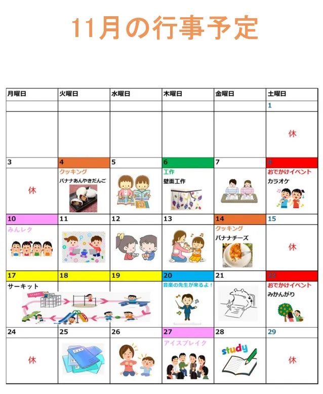 2025年11月の予定表が完成しましたのでお知らせいたします🗓️