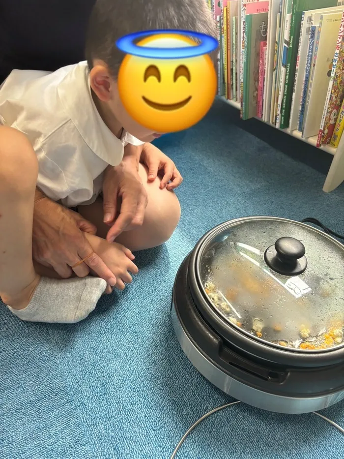 思ったよりも時間はかかりましたが、パンパン音が鳴り始めびっくりしながらみていました。ポップコンがトウモロコシから白くなる様子を「変身した」と言って大騒ぎでした。
