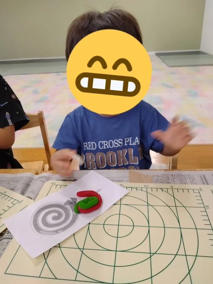 「ぐるぐる模様」を見本にして、好きな色の粘土を使って形づくりをしました🎨