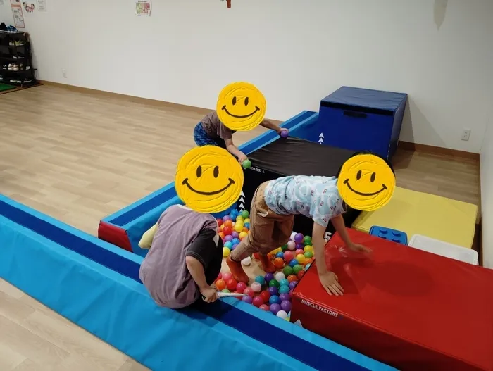 自由時間に場所を決めてボールプールで遊んでいます!!