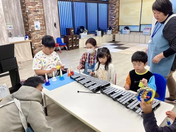 楽器の活動では、スタッフの指示を聞く力、待つ力、よく見て聞いて表現する力など、さまざまな力が培われます✨みんなで息を合わせて、行う演奏はすてきでした!まだまだ、練習中の演奏もありますが、繰り返し行う中で少しずつできるようになってきたパートなど、子どもたちの間でも自信を持って取り組めるようになってきている様子も見られます💪さらにすてきな演奏が完成するのが、楽しみですね。