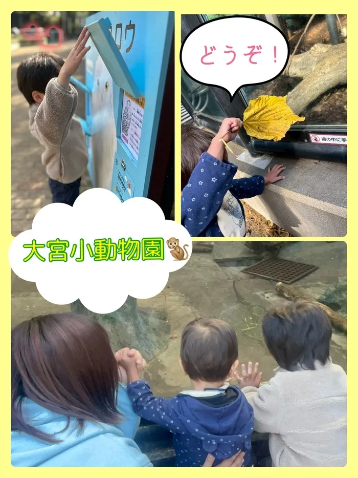 窓から動物のことをじ~っと観察してみたり、落ち葉を拾って「どうぞ!」と餌をあげる真似をしてみたり、時々あるクイズの看板を見つけるとめくって読んだりと汰惜しんでいた子どもたちです😁