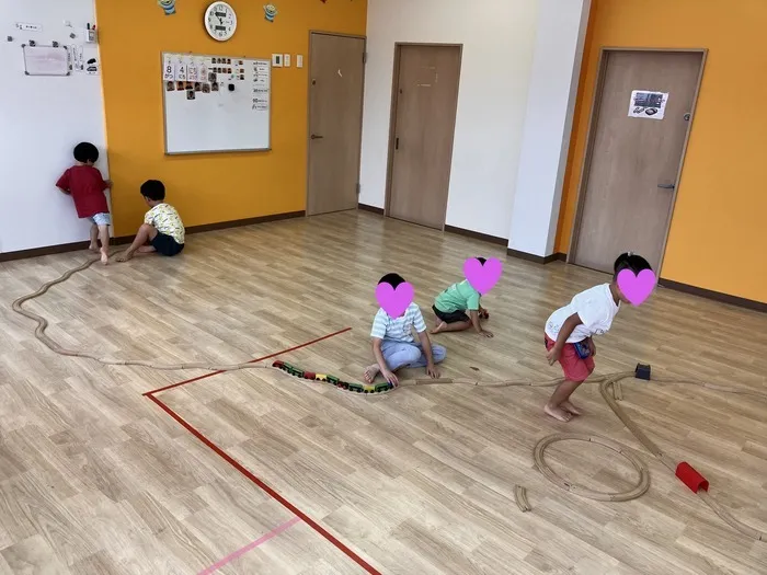 電車の取り合いなどで揉めることもあったけれど、「協同遊び」が自然発生的に始まったことに、子ども達の成長をかんじました😊
