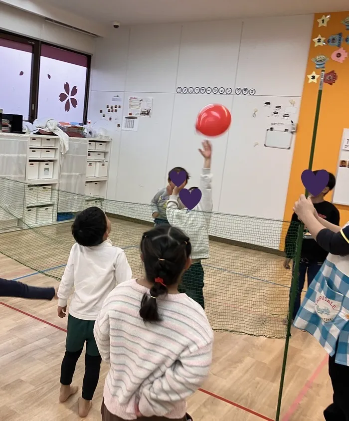 放デーのお兄さん達と一緒に風船バレーを行ないました。