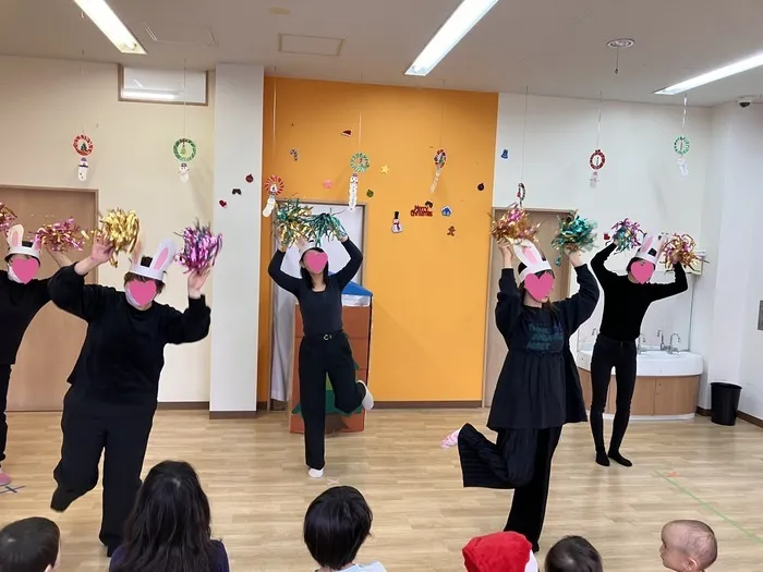踊るお母さんを見てびっくりして泣いちゃう子もいたけど、誰も離席することなくしっかり注目していました😊