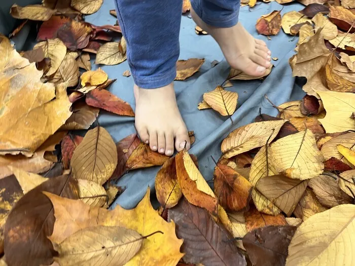 落ち葉を両手いっぱいに持ち、思い切り上に投げて遊んだり、