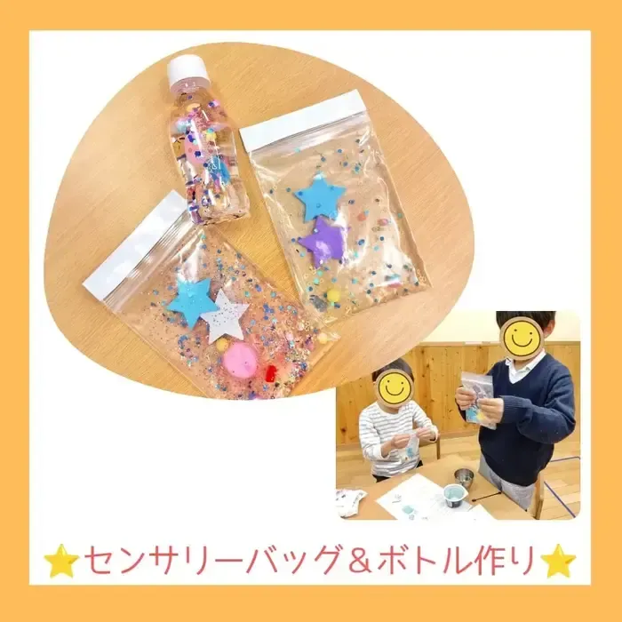 🌟 センサリーバッグ&ボトルは、感覚を刺激しながらリラックスや集中力をサポートする療育アイテムです! ご家庭でも、お子さんと一緒に作ってみてくださいね😊💕